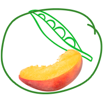 Ingrédients du quotidien : viande de poulet réhydratée (6,9%), légumes réhydratés (4,3%) (pois 3,8%, haricots verts 0,54%), huiles végétales (2,3%), purée de pêche (1,4%), jus d’orange à base de concentré (1,2%).