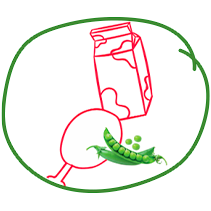 Protéines: lait, poulet, pois et haricots verts.